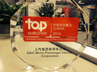 1月15日,由Top Employers Institute主办的“2014年颁奖盛典”在上海举行,共有41家企业入选。上汽集团乘用车公司凭借良好发展态势与综合竞争力,在众多企业中以排名第四的优异成绩脱颖而出,再次蝉联。此次认证评比排在前五名的企业有上海大众、联泰大都会、巴斯夫、上汽乘用车、一汽大众。